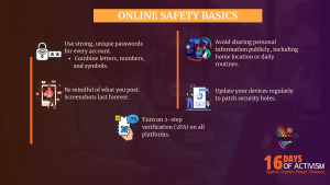 Recently, we have seen a serious and rapidly growing threat that seeks to silence the voices of many women especially those from diverse communities and those with a strong public presence in politics, activism, and journalism. FARUG joined the global movement for the 16 Days of Activism, which commenced on 25 November (International Day for the Elimination of Violence Against Women) and runs through 10 December (International Human Rights Defenders Day). In alignment with this year’s theme UNITE: End Digital Violence Against All Women and Girls, we focused on raising awareness through educating our community on how online abuse manifests, shared tools by providing practical resources for digital safety and promoting respect by encouraging actions that create safer, more respectful online environments.
